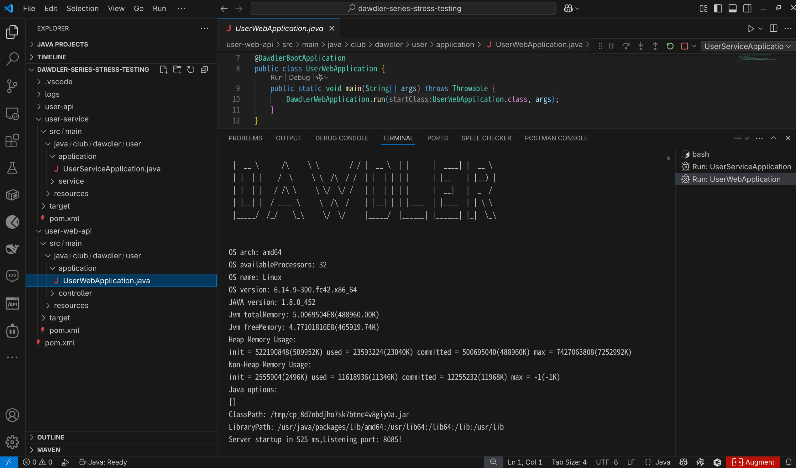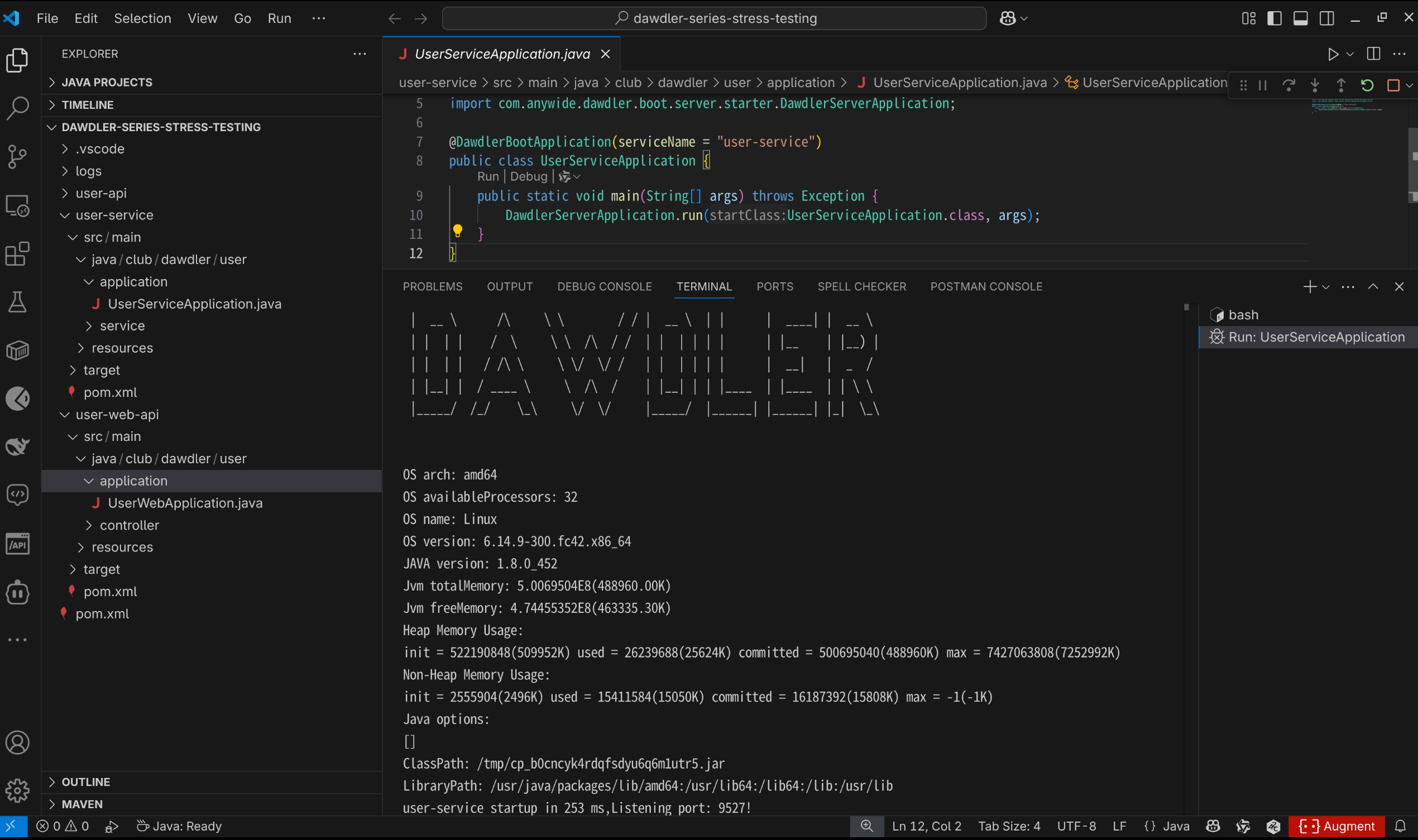 基于导入的dawdler-series-stress-testing项目启动用户的基础服务