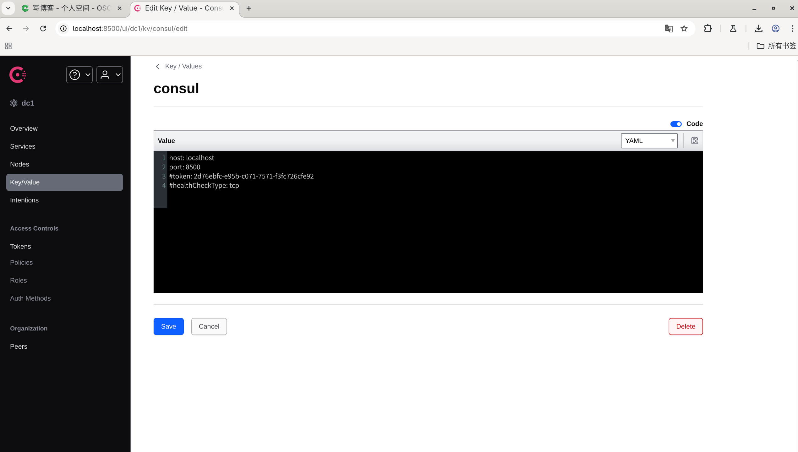 安装完成consul之后 访问consul控制台 http://localhost:8500/