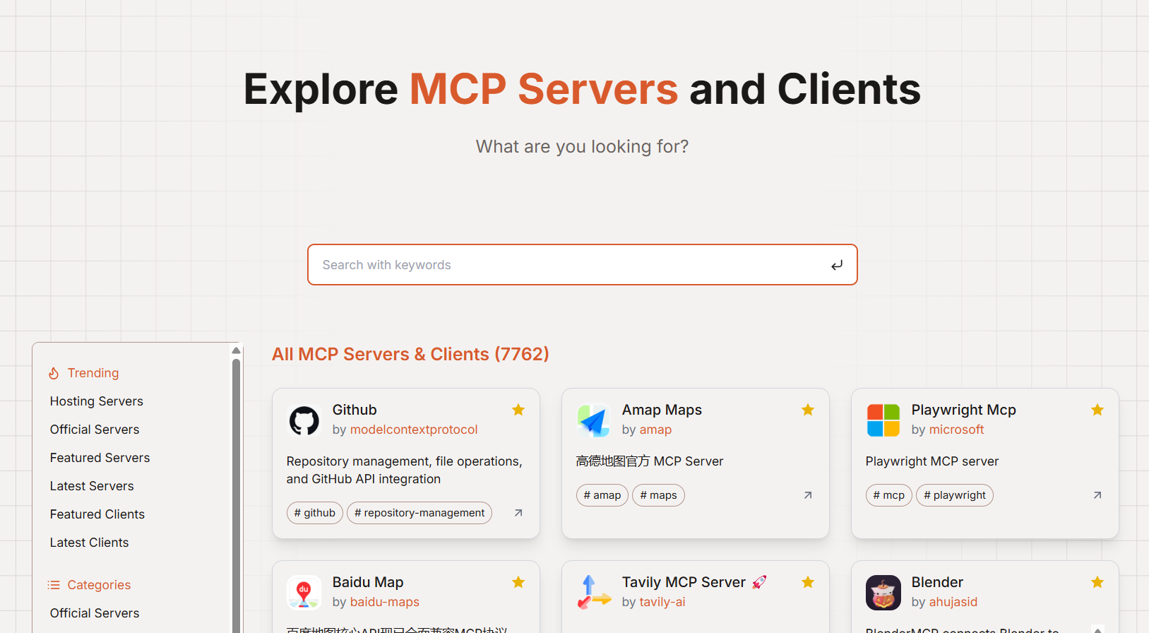 MCP协议诞生于2024年底。该领域处在高速发展与变革中,能力和功能尚未定型,在企业应用场景下的价值也存在争议。但这并不影响数以千计、面向C端场景的MCP服务器不断涌现,从文件处理、在线搜索到地图路径规划、社交媒体分享,以图9所示的全球最大MCP源MCP.so为例,兼容MCP协议的软件在2025年4月就达到了7000余个。