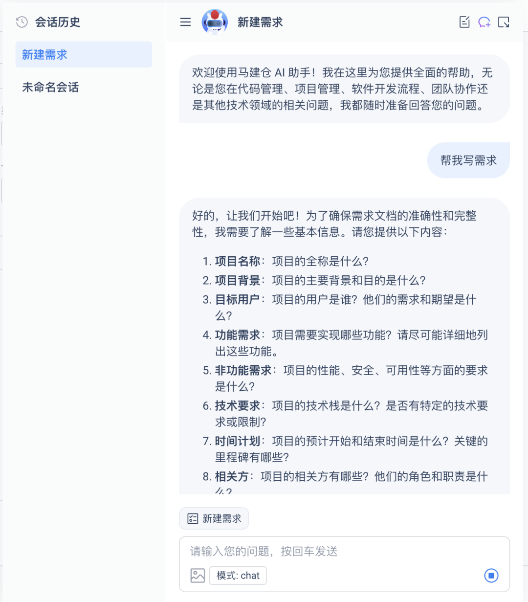 马建仓 AI 助手在近期迎来了一次面向真实研发流程的全链路进化,新增三十余项智能能力,全面覆盖需求、开发、测试、项目管理等关键研发环节。