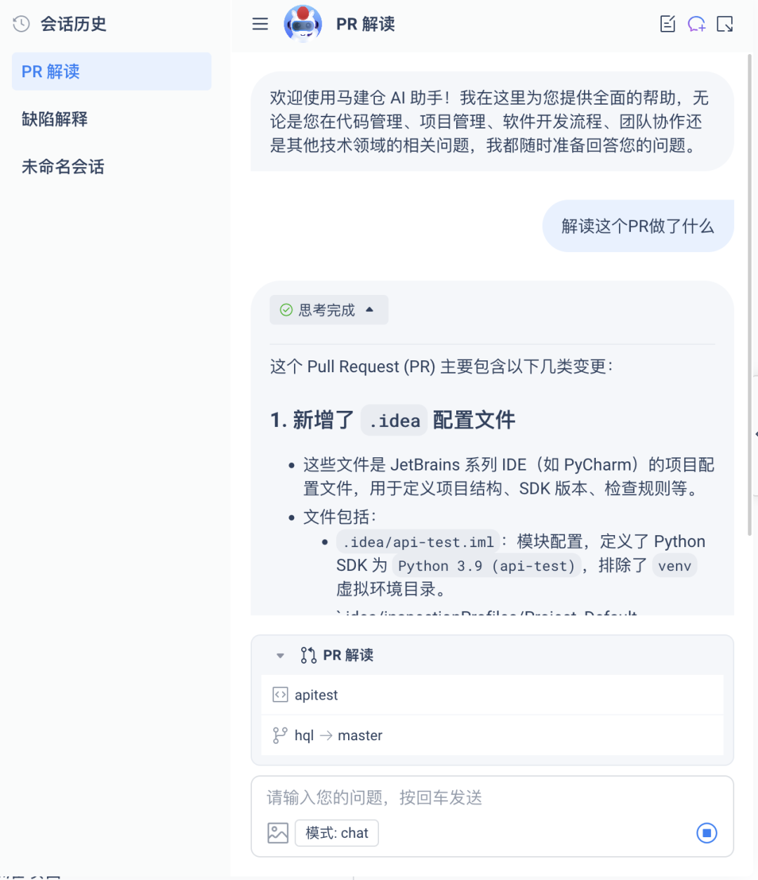 - 修改后提交 PR,负责人可用「解读这个 PR 做了什么」「是否存在优化项」辅助代码审查,最终合并。