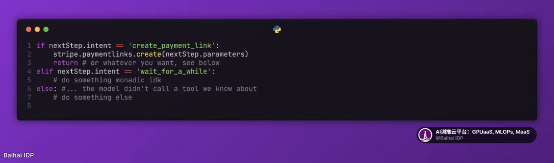 注:实际场景中 Stripe API 的调用更为复杂。一个成熟的智能体需要先获取客户列表、产品目录和价目表等数据,通过关联 ID 构建有效请求参数 ------ 当然,这些 ID 也可以直接预置在提示词/上下文窗口中(本质上这两种方式是相通的,下文将具体说明)。