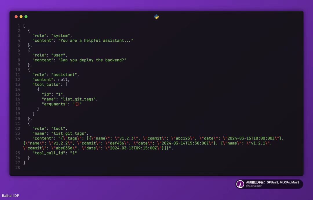 - fetch_git_tags:当模型请求 Git 标签列表时,系统会实时获取标签数据并更新上下文,直接将结果反馈给模型