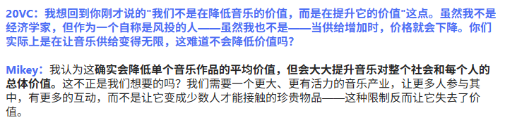 正如 Suno CEO Mikey 在年初的一次采访中所说,(虽然 AI )确实会降低单个音乐作品的平均价值,但却大大提高了音乐对整个社会和每个人的总体价值。