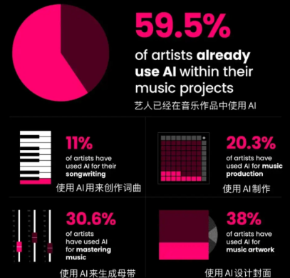 仅仅 4、5 年时间,AI 生成的音乐便做到了以“假”乱真的程度,甚至已悄悄潜入了专业制作团队的录音棚、DAW 中。AI 对传统音乐制作的冲击,不可谓不小。上个月,音频技术公司 Sonarworks 就搞了一个研究《音乐产业中的 AI 》,以下几点蛮有意思: