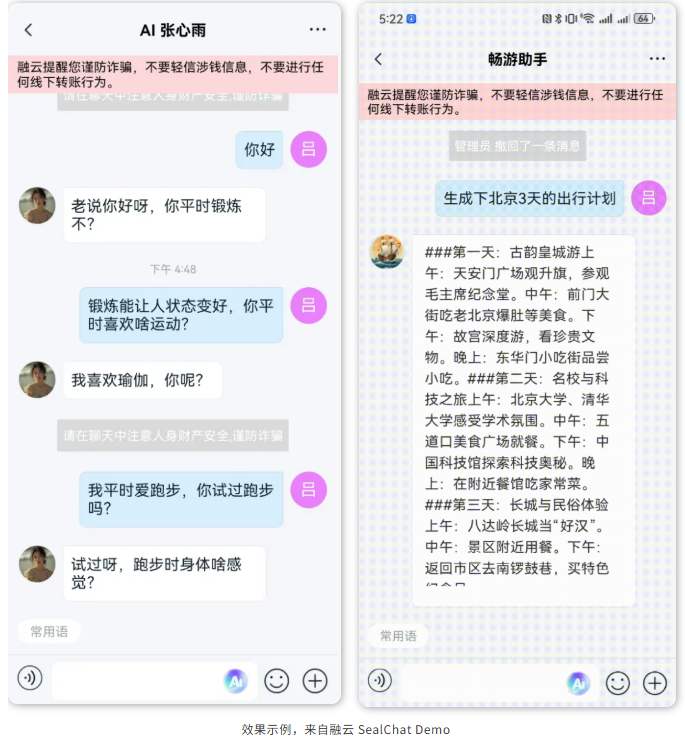 深度整合 IM 对话与 AI 能力,融云 AI 机器人正式上线。提供独立的机器人用户类型,拥有详细的事件回调能力,独家直连 AI 平台,大幅降低开发者落地 AI 社交、智能回复等业务的成本,给开发者的创新探索加速。