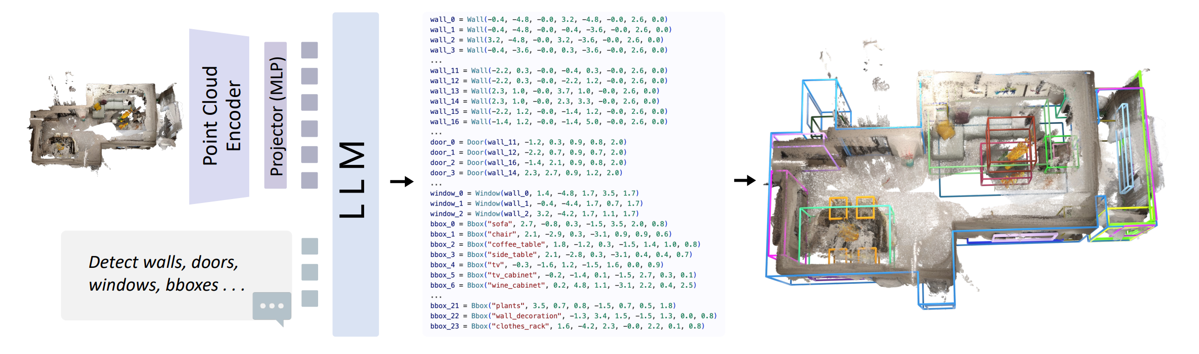作为一款将大语言模型扩展到3D空间理解任务中的模型,SpatialLM能从3D点云输入生成结构化的空间场景描述,这一过程突破了大语言模型对物理世界几何与空间关系的理解局限,让机器具备空间认知与推理能力,为具身智能等相关领域提供空间理解基础训练框架。