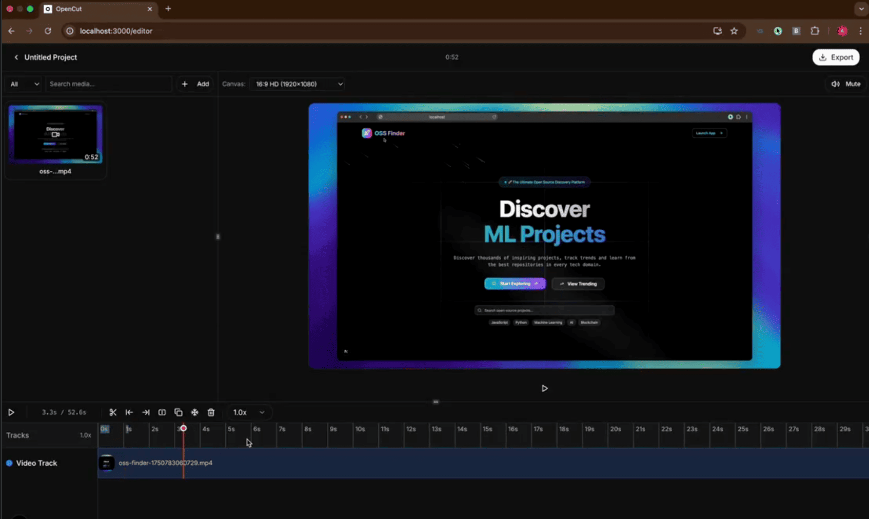 这是一款开源、免费的视频编辑器,致力于成为 CapCut(剪映)的开源替代品。作为一个“年轻”的开源项目,它为用户提供了可在浏览器中运行的视频剪辑工具,所有视频内容均保存在本地设备,支持时间线多轨道视频编辑、实时预览、无水印等功能。