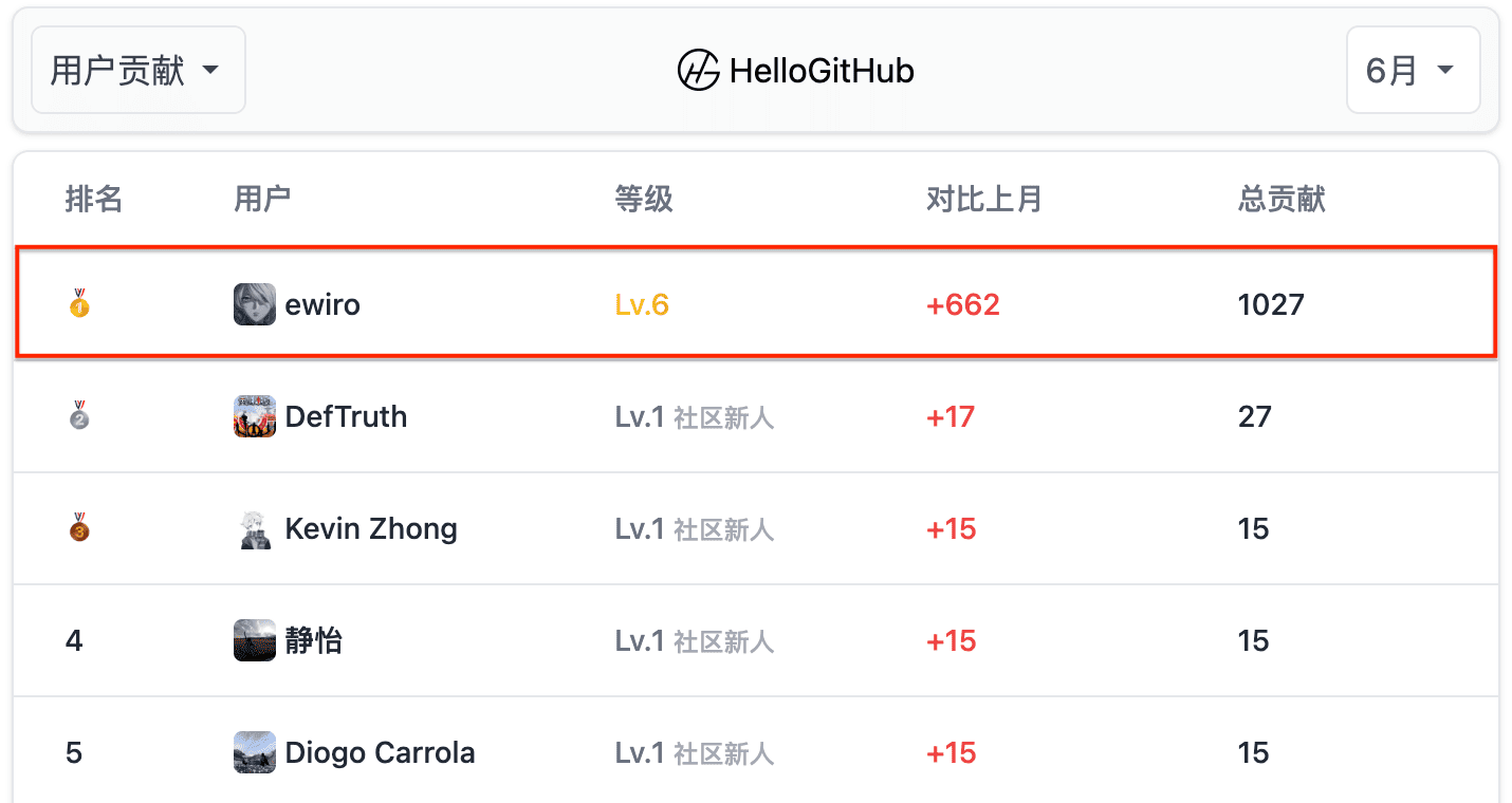 号外号外!本周 HelloGitHub 社区迎来了首位满级(Lv.6)用户——「ewiro」!
