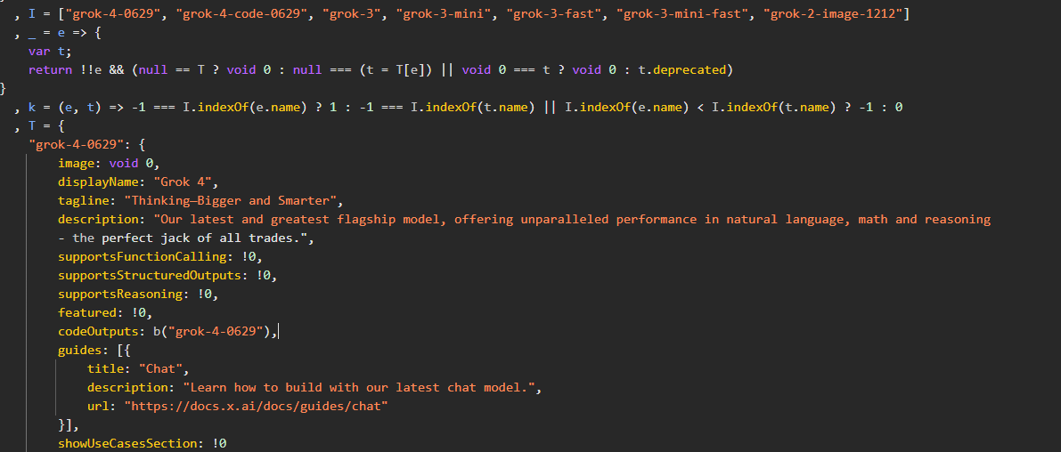博主「AiBattle」爆料称,其在 xAI 控制台的源代码中发现了 2 个 Grok 4 模型的相关信息。