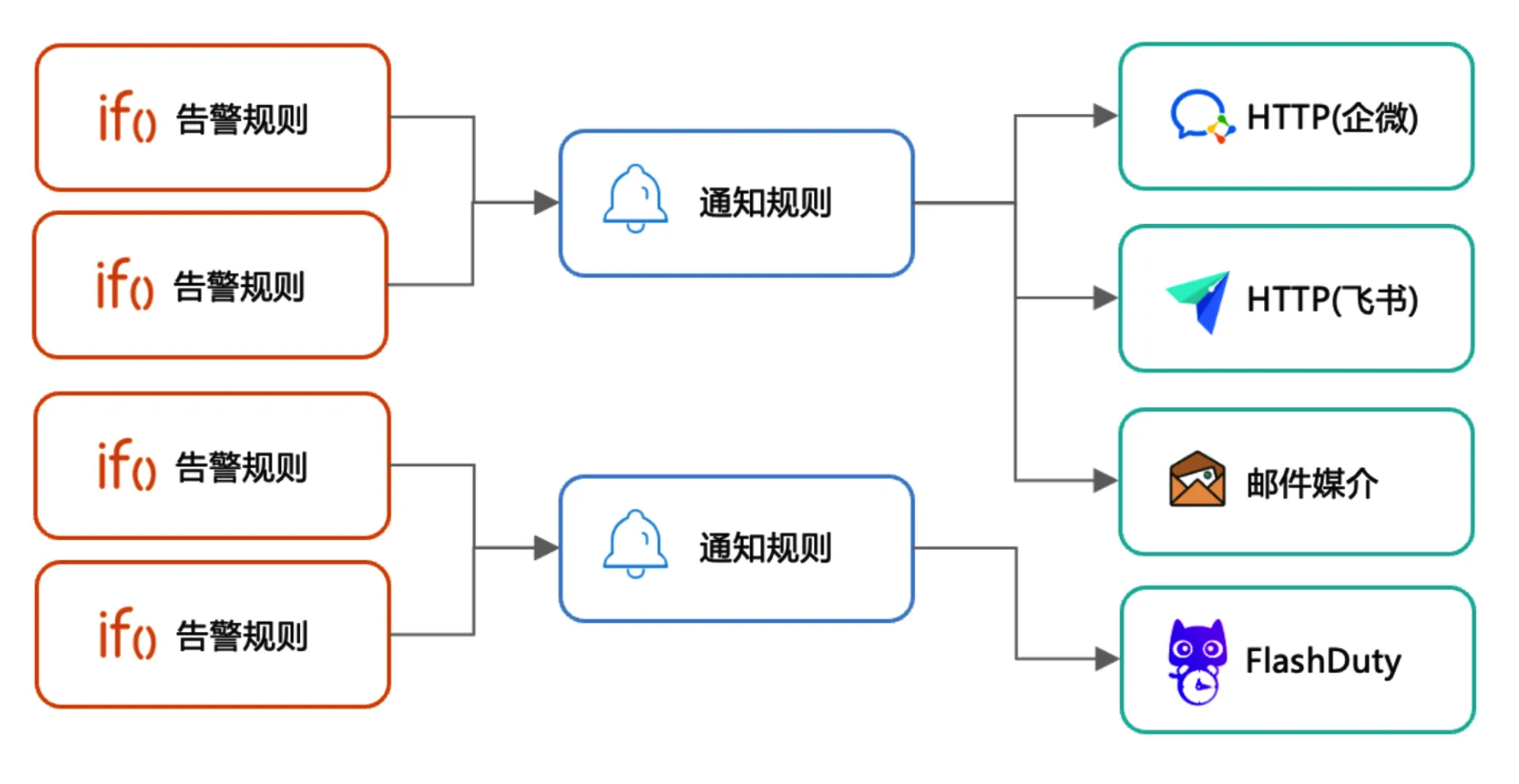重新设计了整个通知链路,抽象了通知规则、通知媒介、消息模板等。内置支持了 20 种通知媒介,也很方便对接外部通知脚本、HTTP 地址。