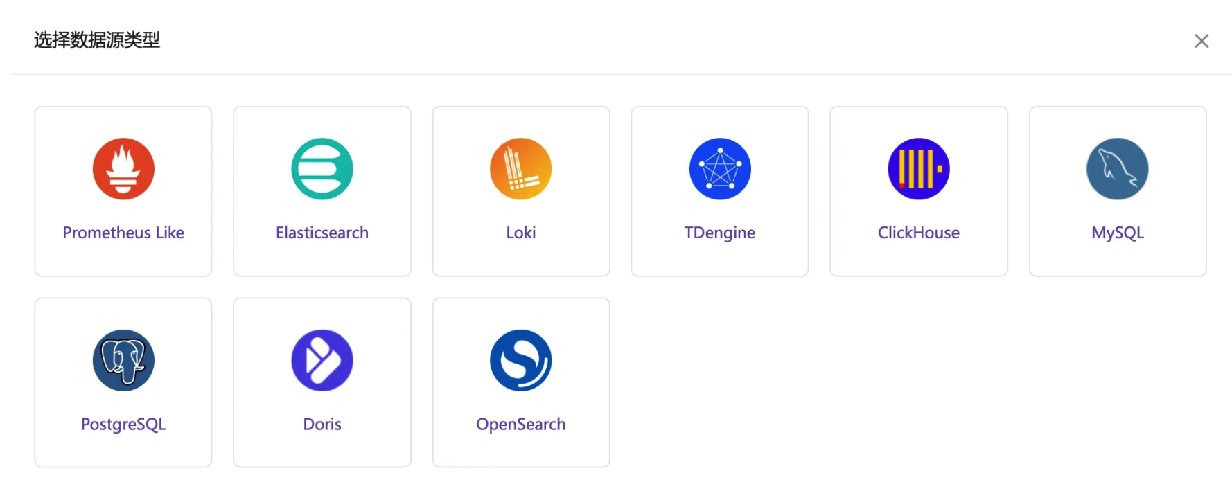 开源版支持了常见的一些数据源。注意,由于产品定位的考虑,后面支持的数据源都不支持看图,只支持告警,侧重把告警能力打透。