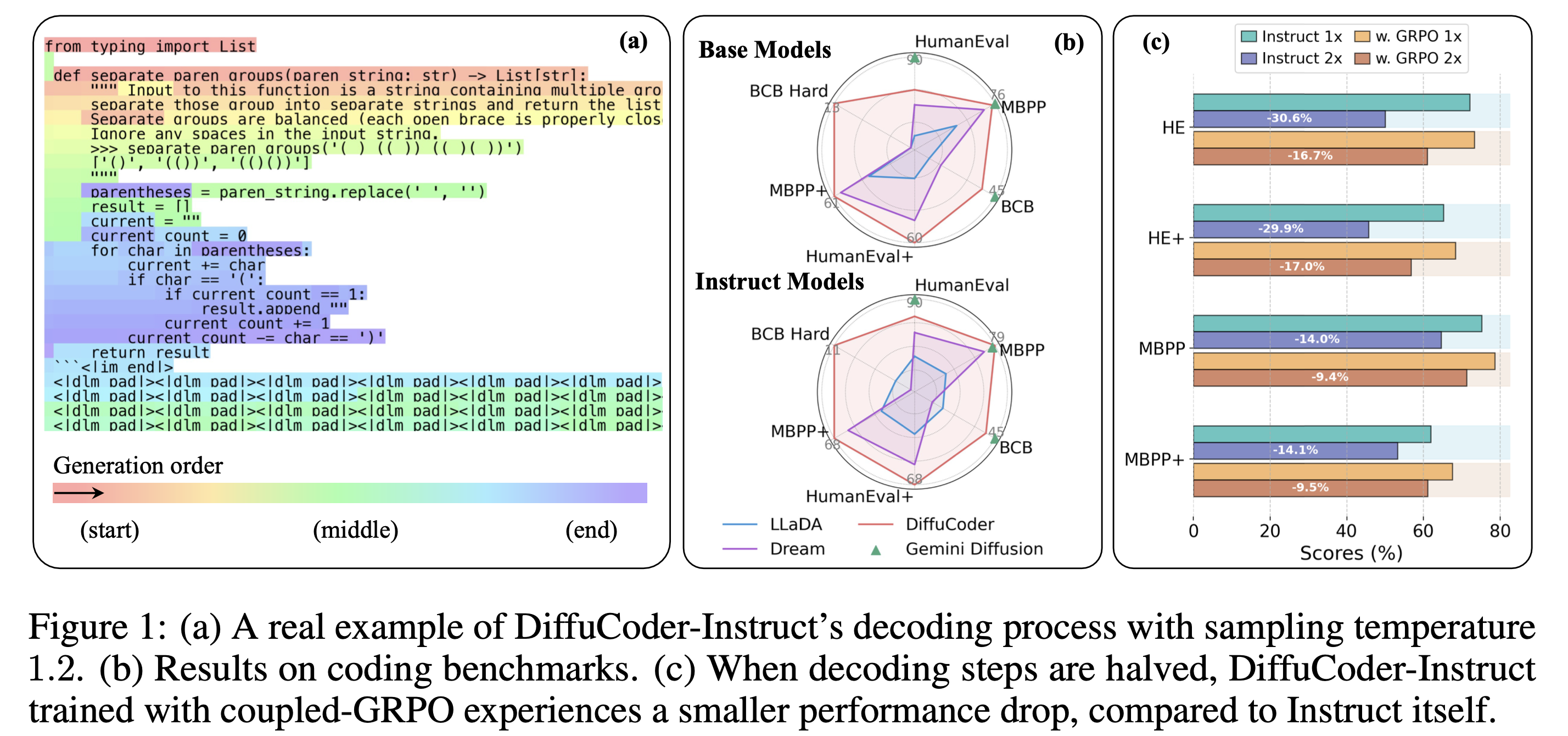 苹果开源全新代码生成模型 DiffuCoder-7B-cpGRPO