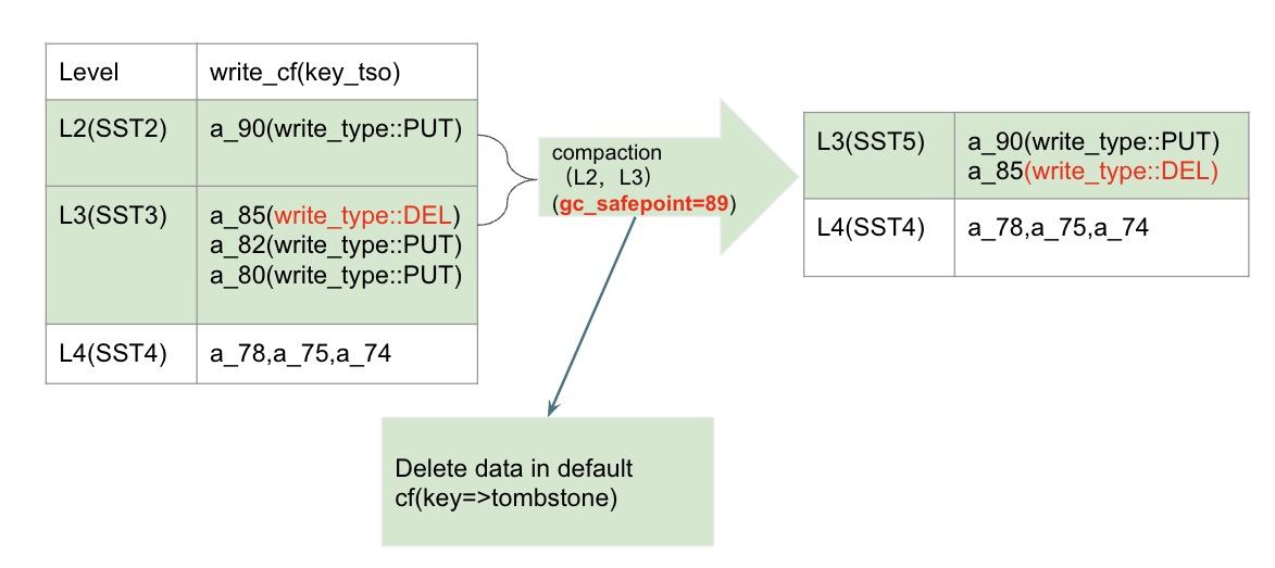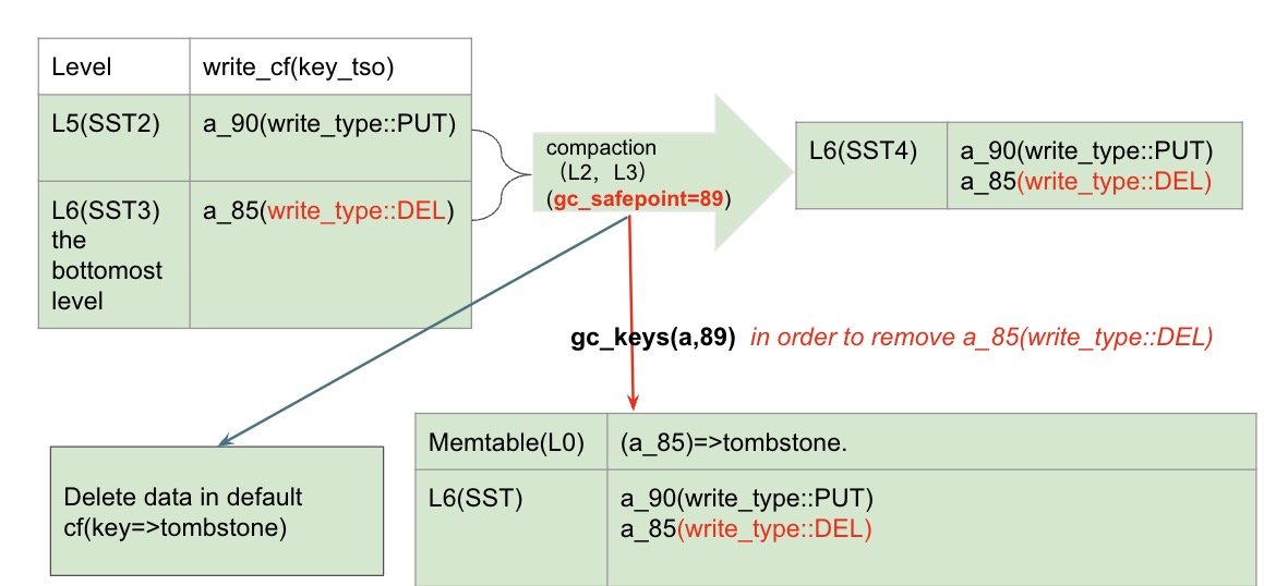 - gc_keys 会向 rocksdb 写入一次 (DELETE ,a_85), 这是 write_cf 在 compaction filter 打开情况下,生成 tombstone 的唯一方式。
