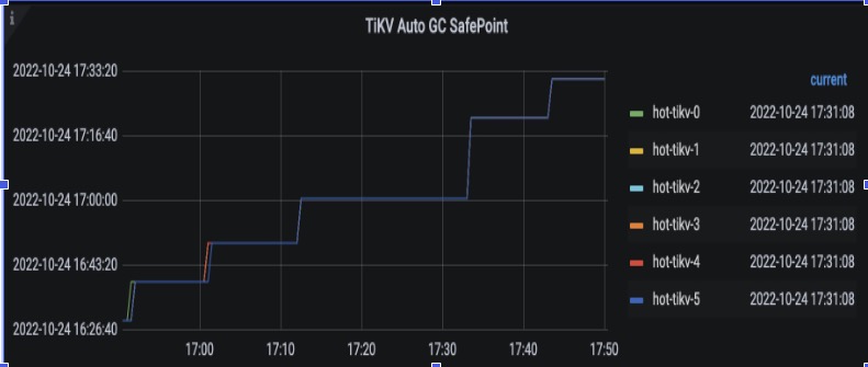 当监控中看到 tikv auto GC safepoint 长时间卡住不推进时,意味着 tidb 侧的 GC 状态可能出现了问题,此时需要按照上一篇文章指导去排查 TiDB 侧 GC 卡住的原因。