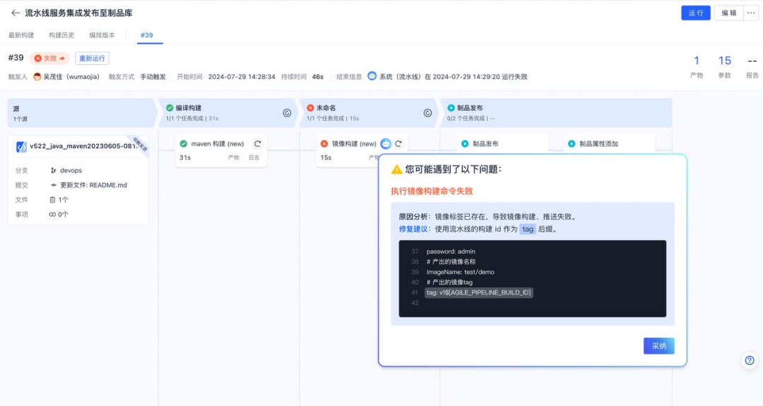 AI 还可根据正在执行的流水线情况,自动分析执行错误,给出修复建议;培基于历史执行数据,生成最佳模板和流程设置建议,推动流水线持续优化。未来还可改善安全防护设施,创建智能化安全运维体系,推动关键领域软件交付全链路向更智能、更安全、更高效方向发展。