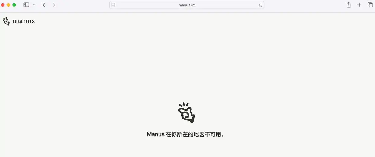 与此同时,打开Manus的官网发现,其官网首页显示“Manus在你所在的地区不可用”,而此前为“Manus中文版本正在开发中”。