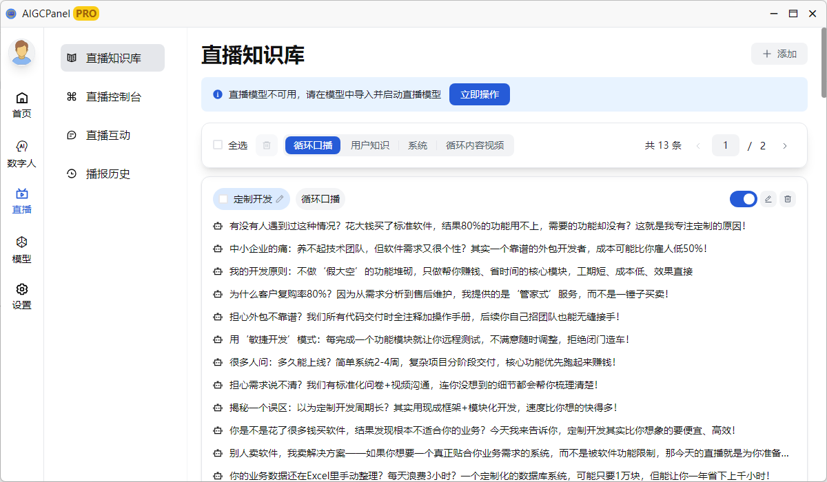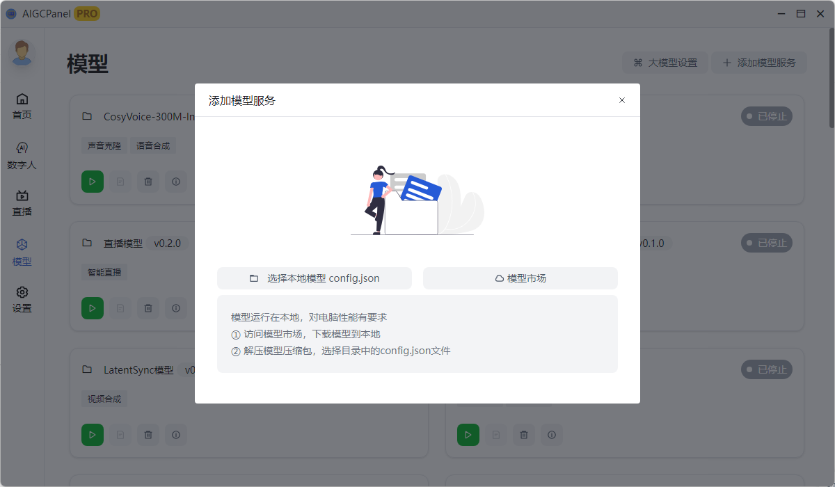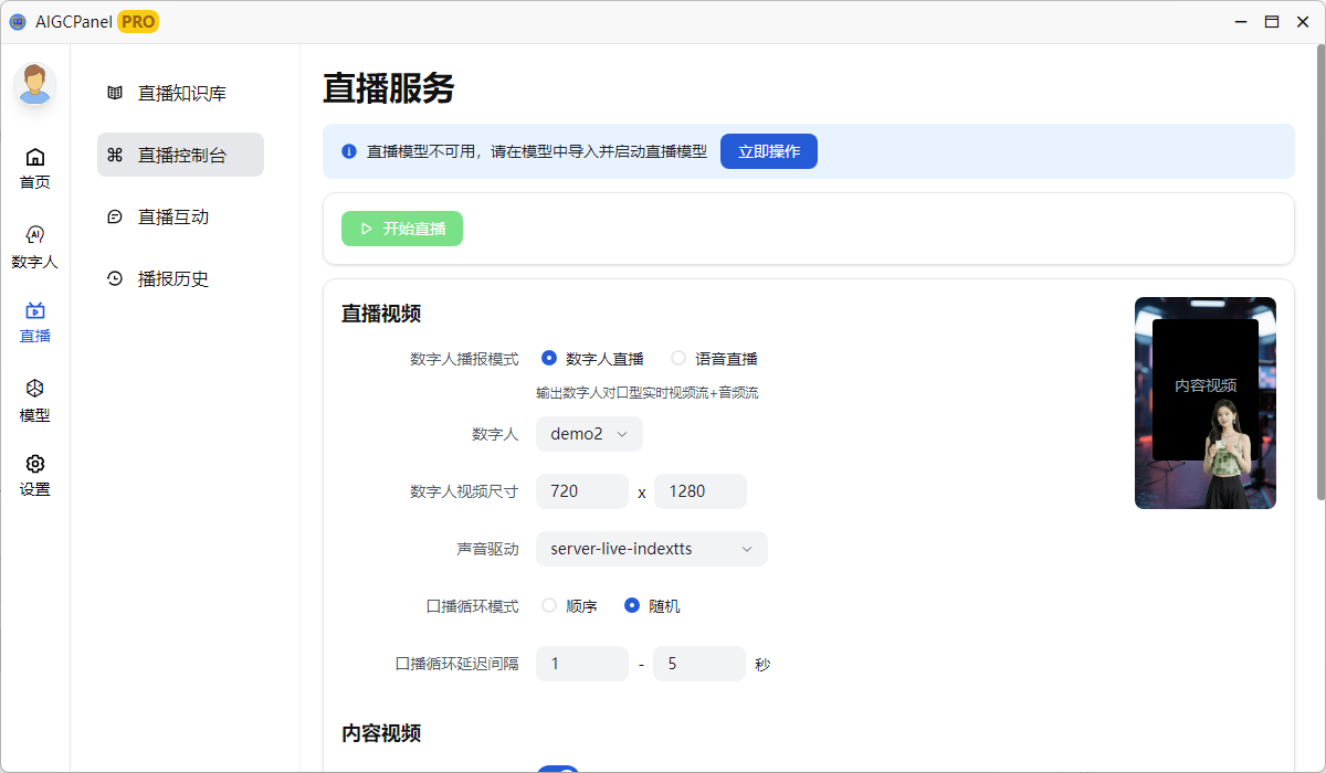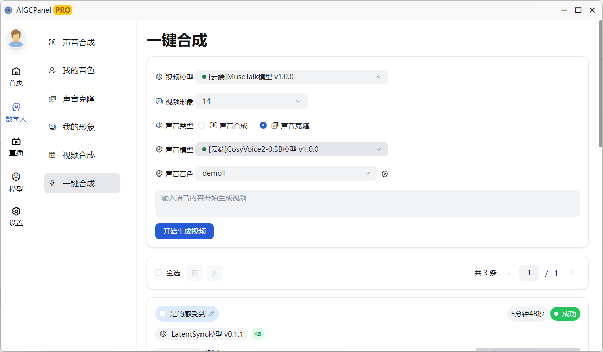 AigcPanel是一个简单易用的一站式免费开源AI数字人系统,小白也可使用。 支持智能直播、视频合成、声音合成、声音克隆,简化本地模型管理、一键导入和使用AI模型。
