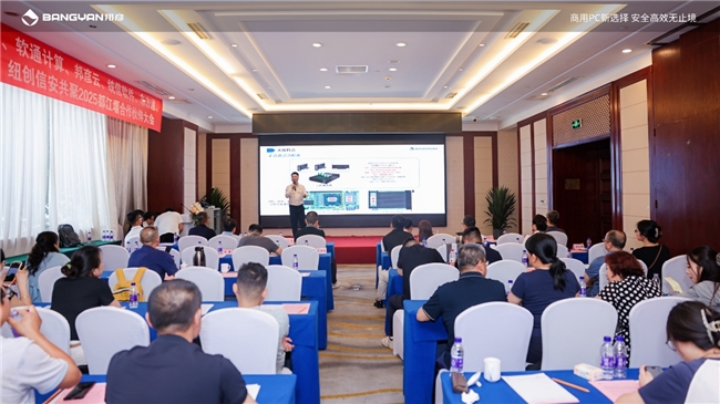 2025 年 7 月 17 日,一场以 “破局密码安全壁垒 抢占国产化新赛道” 为主题的 “网联云汇 2025 年中感恩盛典” 在世界文化遗产地都江堰盛大举行。此次盛会汇聚了 100 多位信创产业链代表、核心代理商及生态伙伴,众人聚焦 “国产化 + 数据安全” 这一核心议题深入探讨。邦彦技术股份有限公司(股票代码:688132)受邀参会,并携邦彦云 PC 新一代桌面云解决方案精彩亮相,集中展示了面向政企用户的全栈信创能力与丰富的落地实践成果。
