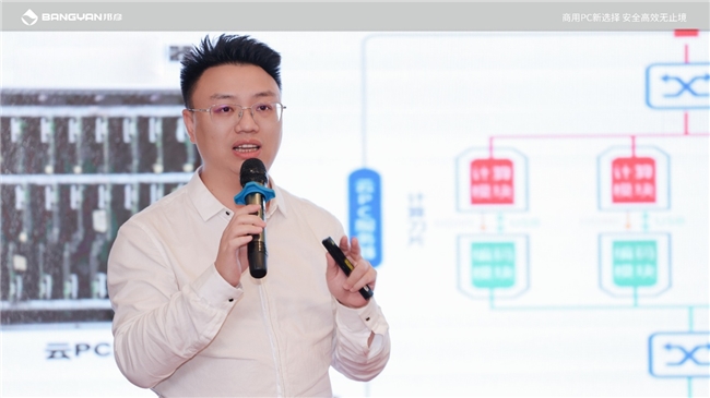会议期间,邦彦技术资深解决方案经理余洋针对邦彦云 PC 的特性与应用场景进行了分享。他指出:“信创替代绝非简单的‘换芯’工程,而是安全、体验、运维、合规的四重升级。” 这一观点精准点出了当前信创领域的核心诉求。并在接下来的演讲环节中,针对 “产业痛点—技术破局—生态共赢”三个维度进行了深度剖析: