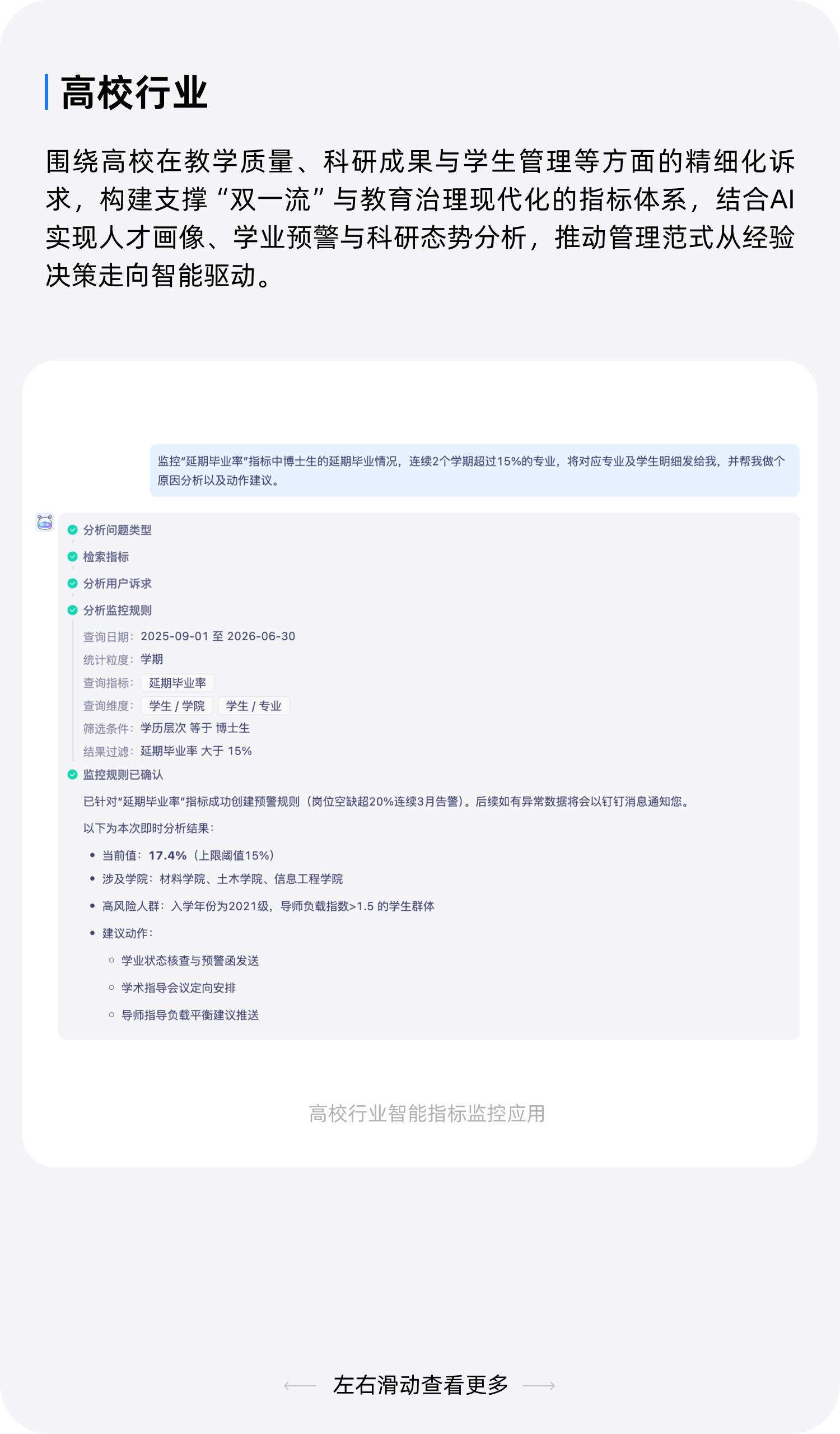 决策闭环支撑业务落地:结合历史数据与实时指标,AI 预测业务趋势并给出行动建议,推动 "数据洞察 - 决策制定 - 执行反馈" 的全流程闭环。
