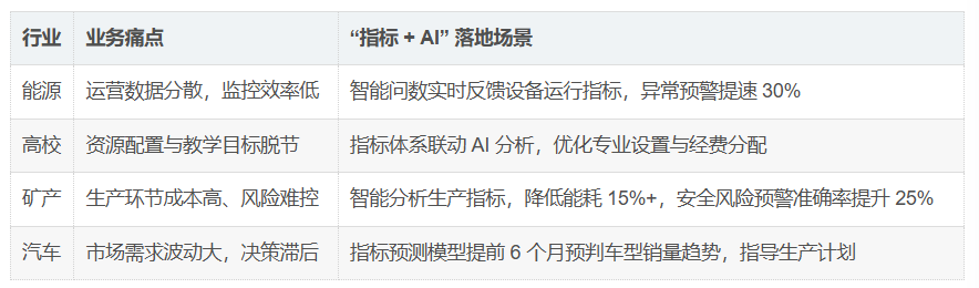 三、四大行业实践:"指标 + AI" 落地路径参考