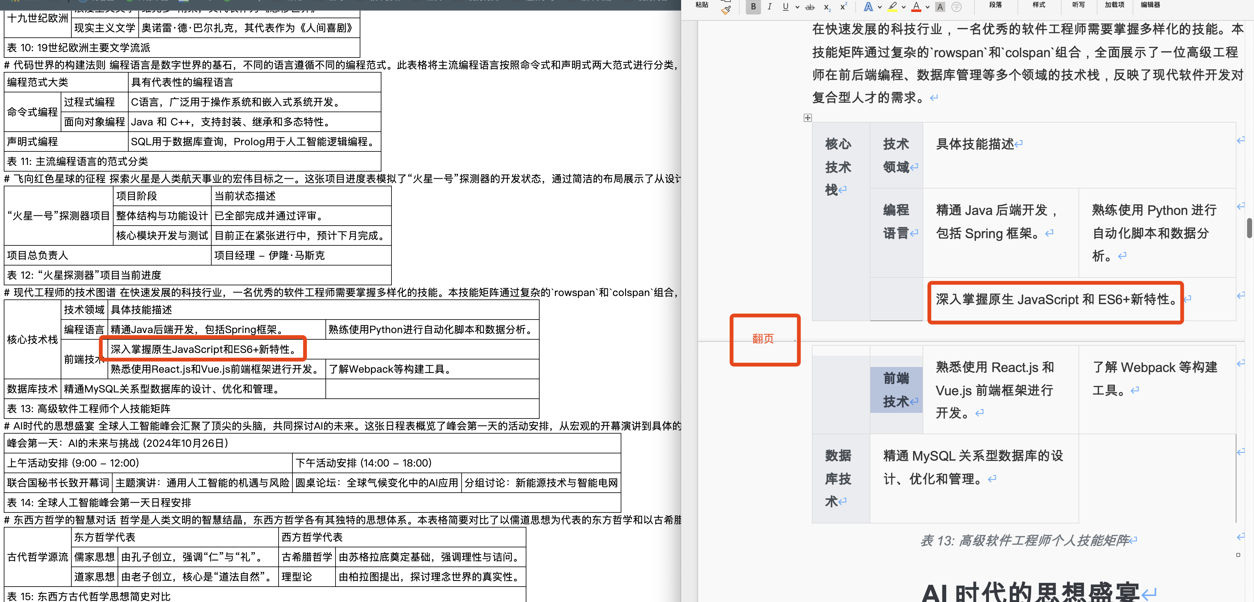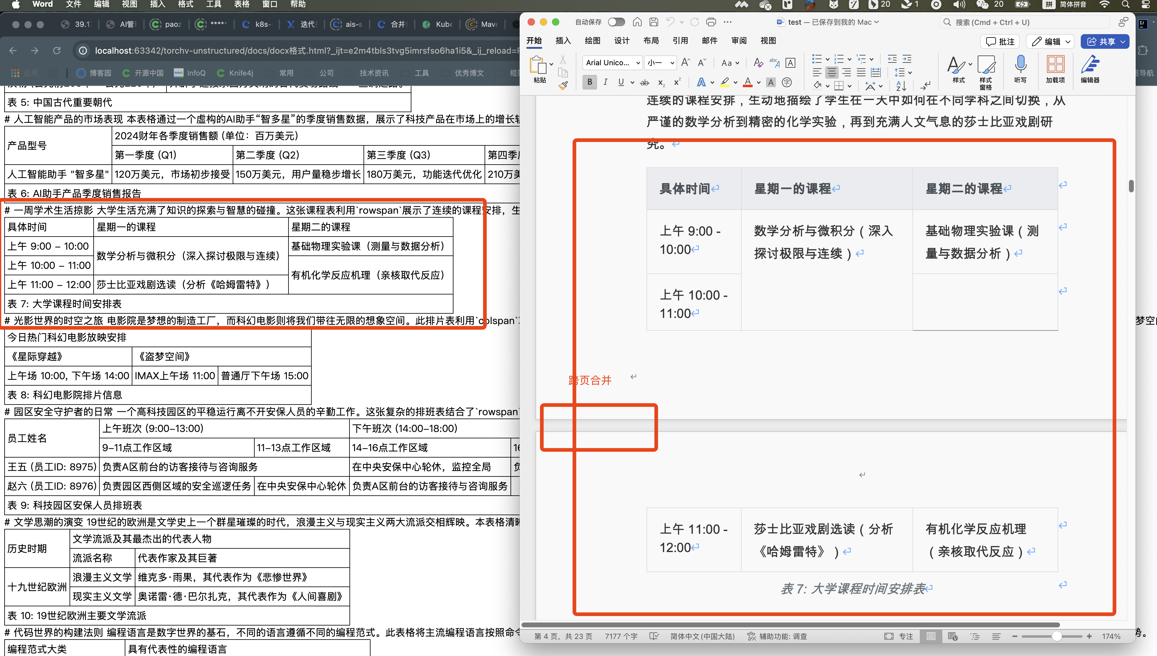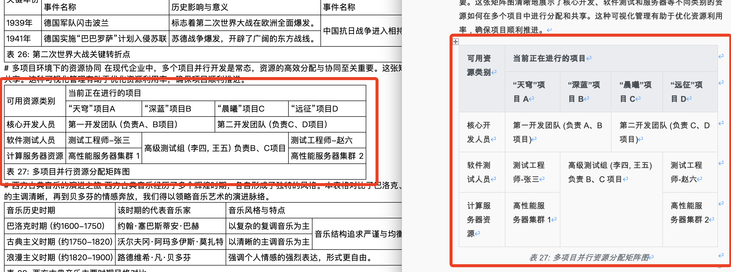 表格解析技术:提供在Doc/Docx两种格式下的表格解析优化,解决单元格合并等问题