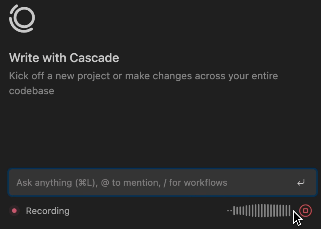 新版本为核心的 Cascade AI 助手引入了语音支持,用户现在可以通过语音输入复杂的任务提示。