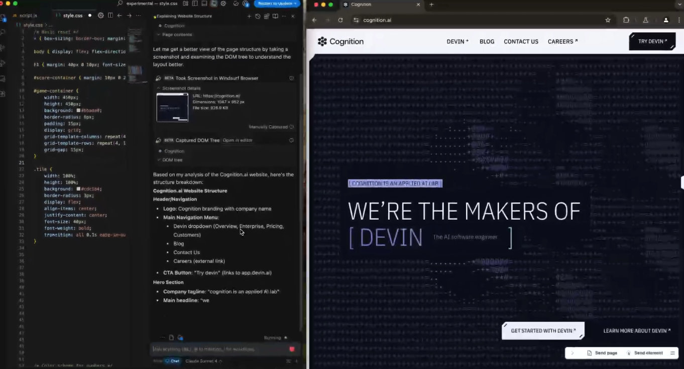 浏览器集成也得到深化,Cascade 现在可以访问更多浏览器工具,如对打开的标签页进行截图和检索 DOM 树。