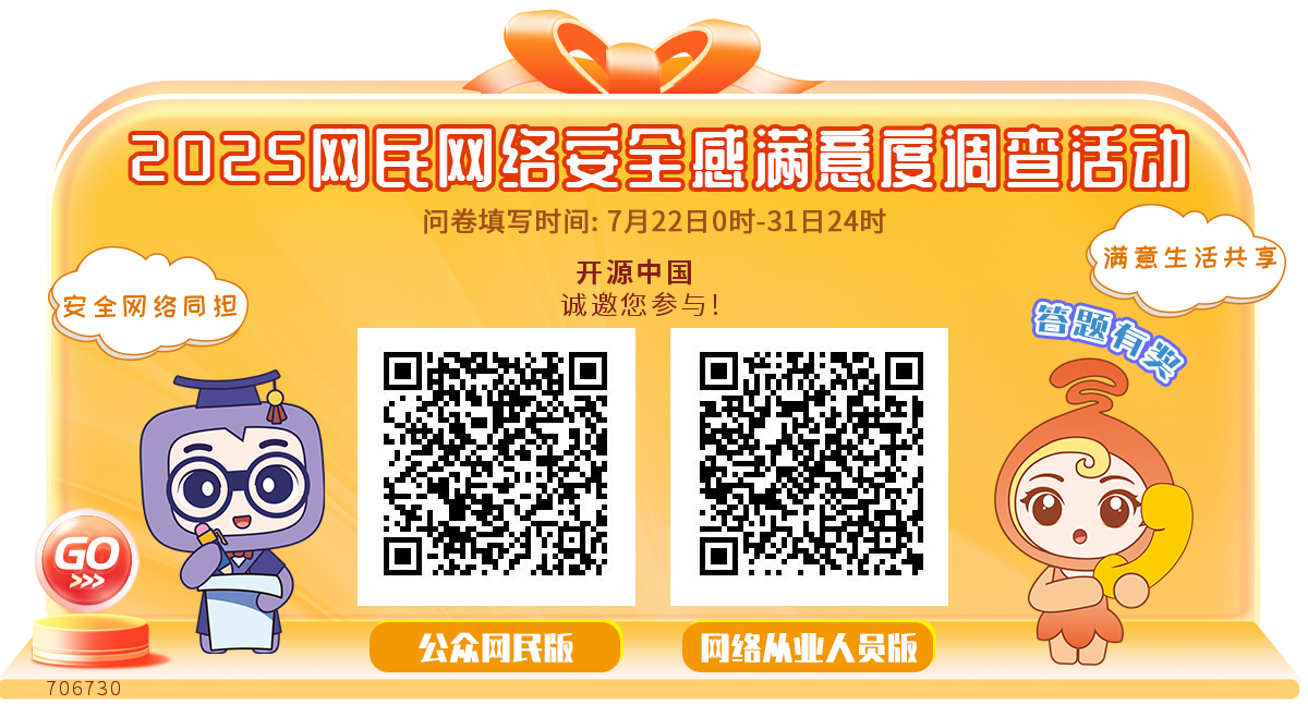“2025网民网络安全感满意度调查活动”定于7月22日0时至31日24时开展样本采集工作,全国同步开通问卷答题通道,面向广大网民广泛征集意见。