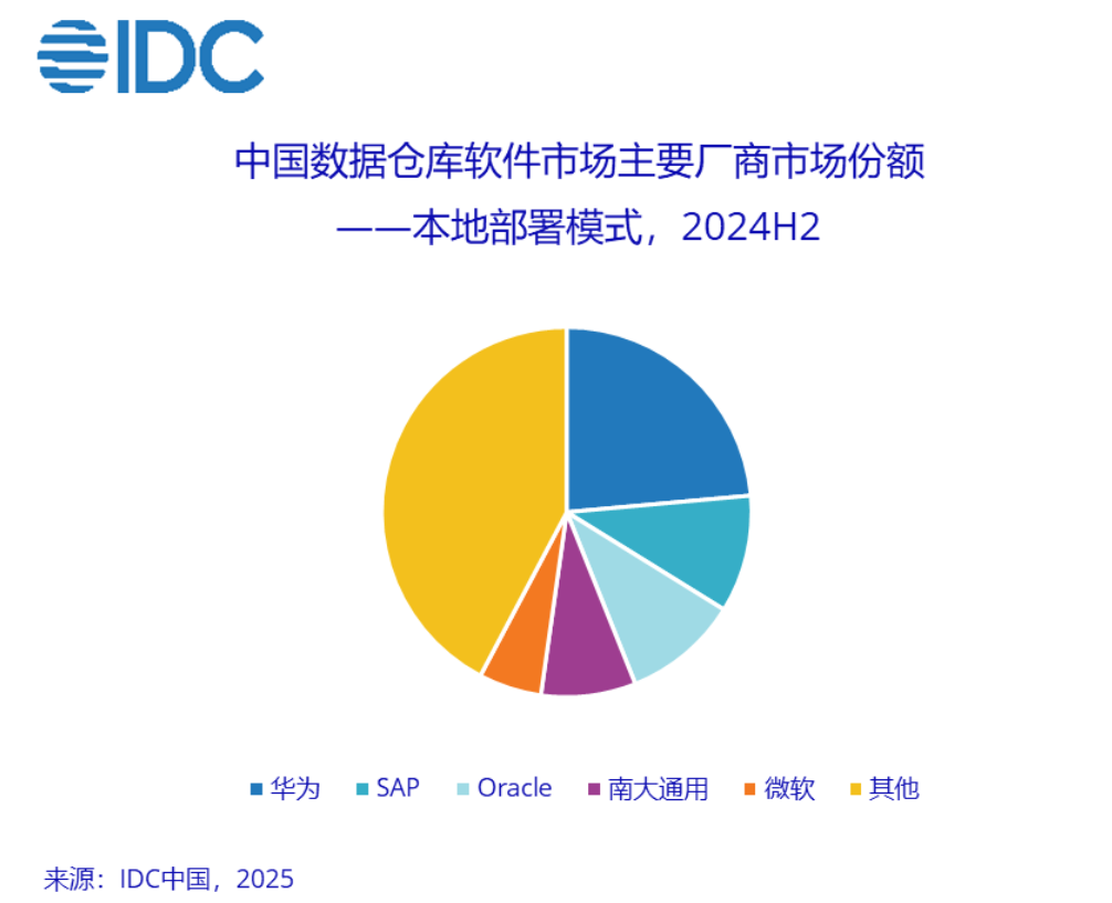 2024下半年,中国数据仓库本地部署模式市场前五大厂商总计占比57.7%。出于数据安全和合规性的考虑,金融、政府、能源等行业,以及大型企更倾向于本地部署模式的数据仓库产品。