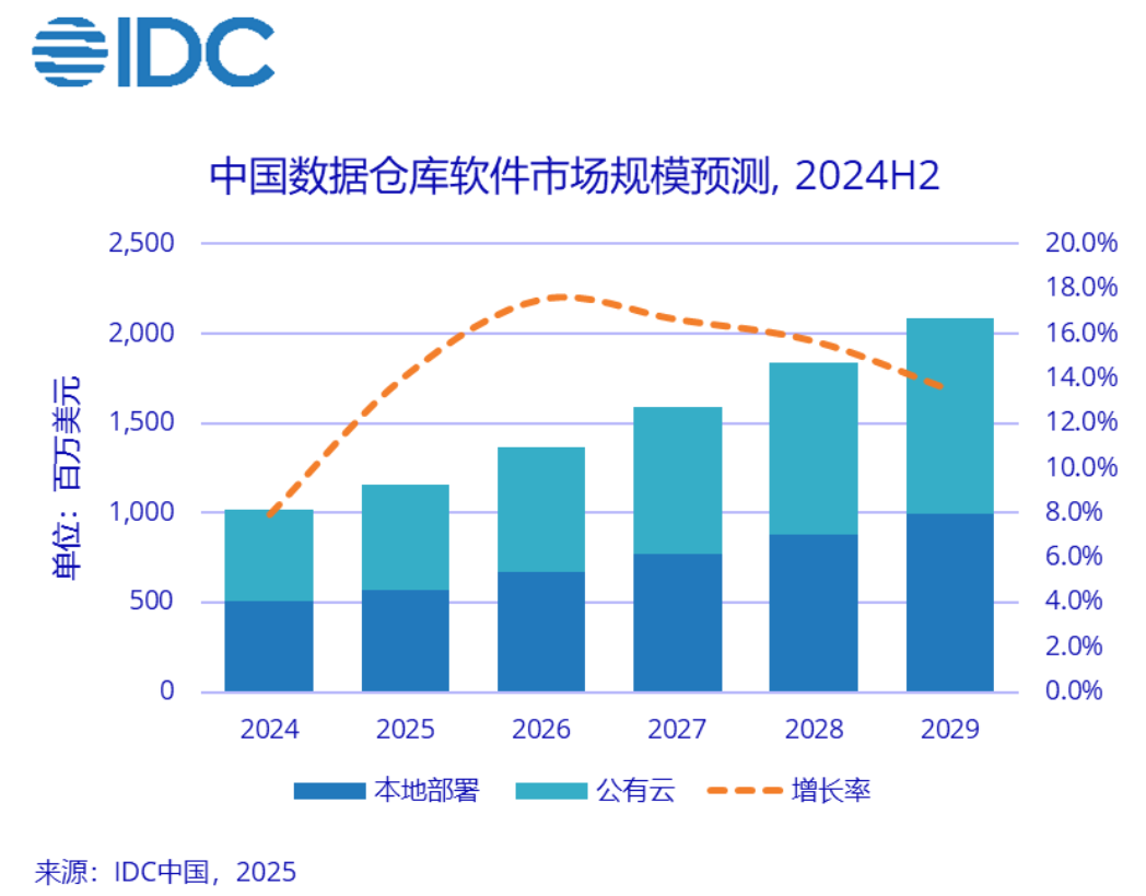 预计 2029 年中国数据仓库软件市场规模将达 20.9 亿美元