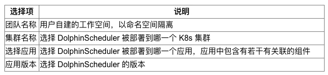 - 点击 DolphinScheduler 右侧的安装进入应用安装页面,填写对应的信息,点击确定即可开始安装,自动跳转至应用视图。