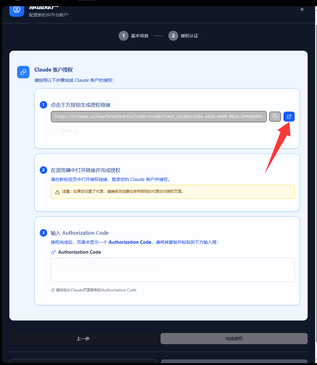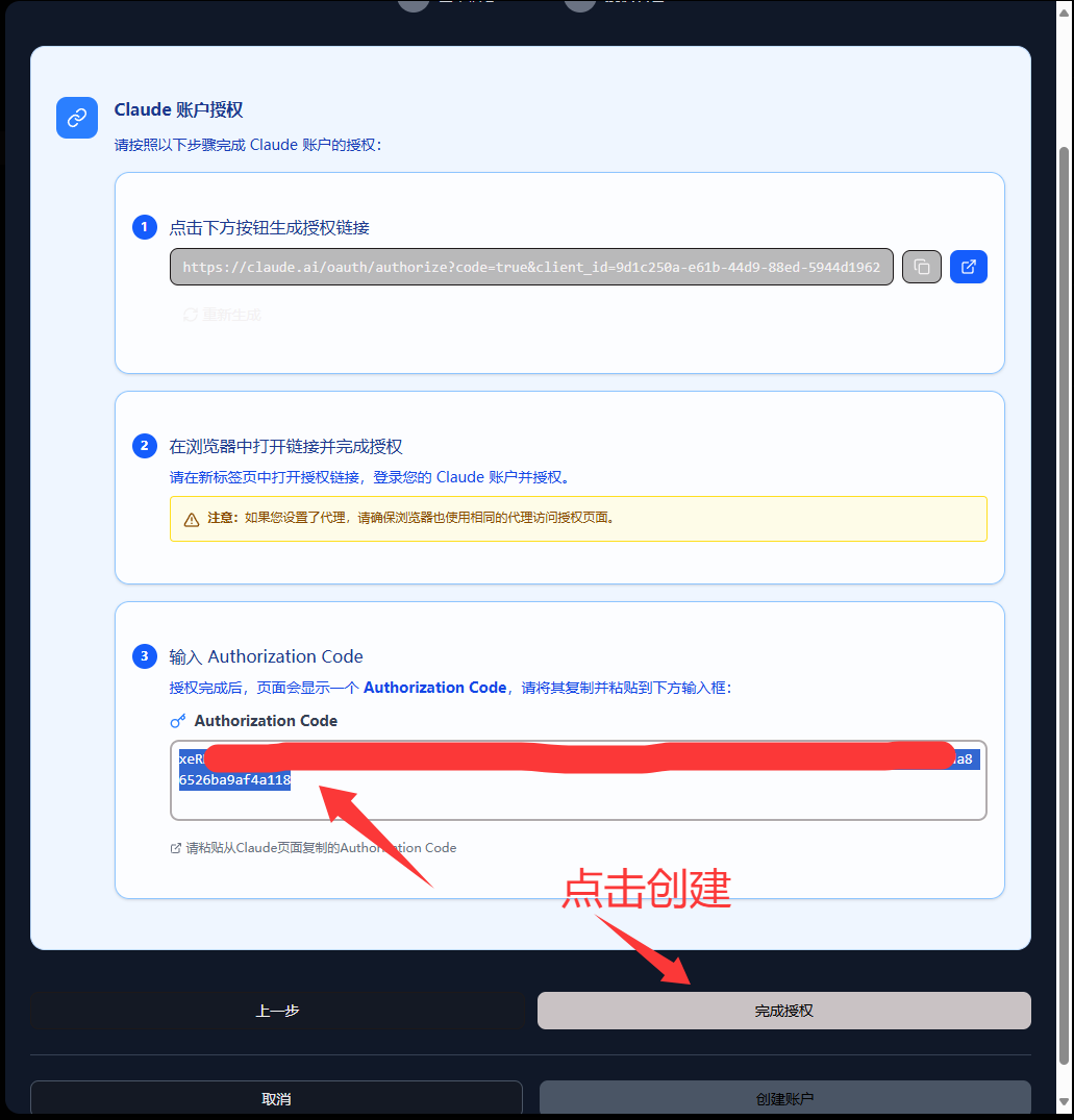 点击"授权"按钮,您将获得授权token。请复制此token,然后返回到代理服务的配置页面: