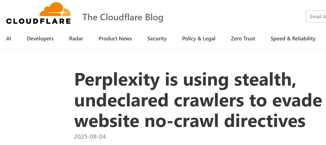 根据互联网基础设施提供商 Cloudflare 的最新研究报告,人工智能初创公司 Perplexity 被指控在抓取网站内容时忽视了明确的阻止指令。Cloudflare 表示,他们观察到 Perplexity 在尝试抓取网页时隐藏了自己的身份,以此规避网站的偏好设置。
