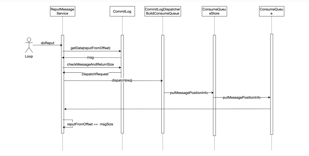 ReputMessageService 作为异步任务,会不停的读取 CommitLog,当有新的消息写入,它会立即读取到该消息,然后根据消息体构建一个 DispatchRequest 对象,CommitLogDispatcherBuildConsumeQueue 处理 DispatchRequest 对象,最终将 CqUnit 写入到 ConsumeQueue 的存储中。