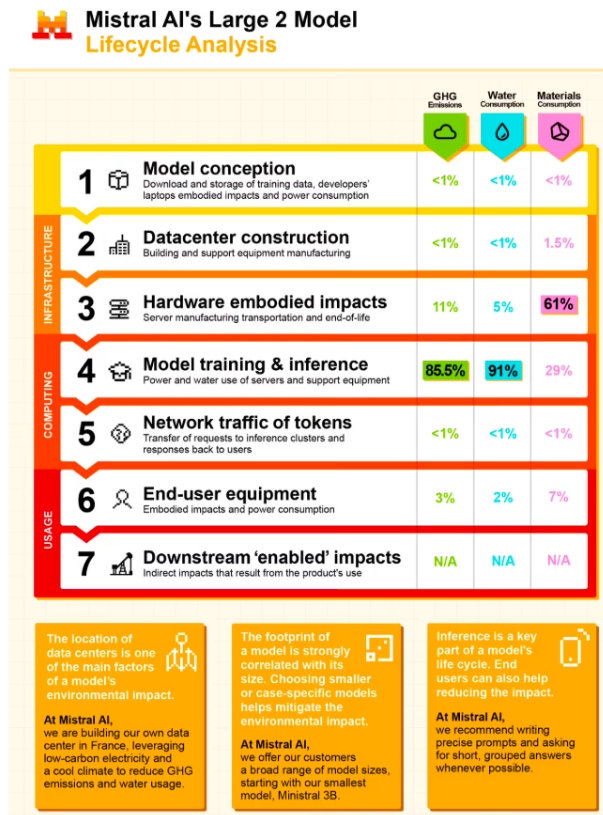 Mistral AI近日发布了一份详尽的环境影响评估报告,首次全面披露了其旗舰模型Mistral Large2在整个生命周期中的真实环境代价。