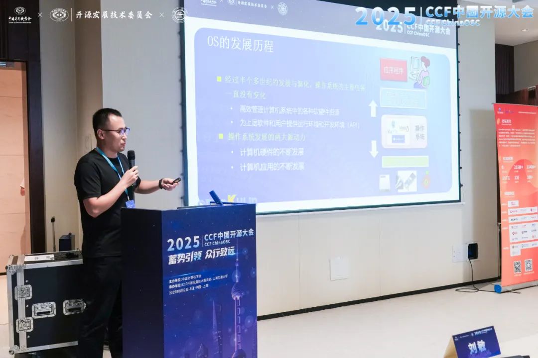 openKylin 社区 AI4OS SIG Owner、国防科技大学副研究员刘晓东为论坛致欢迎词。他指出:“智能时代的基础软件正经历‘从工具化到智能化’的范式变革,开源社区是推动这一变革的核心力量。openKylin 期待与高校、企业伙伴携手,将技术创新转化为产业动能,并对与会来宾的到来表示衷心感谢。”
