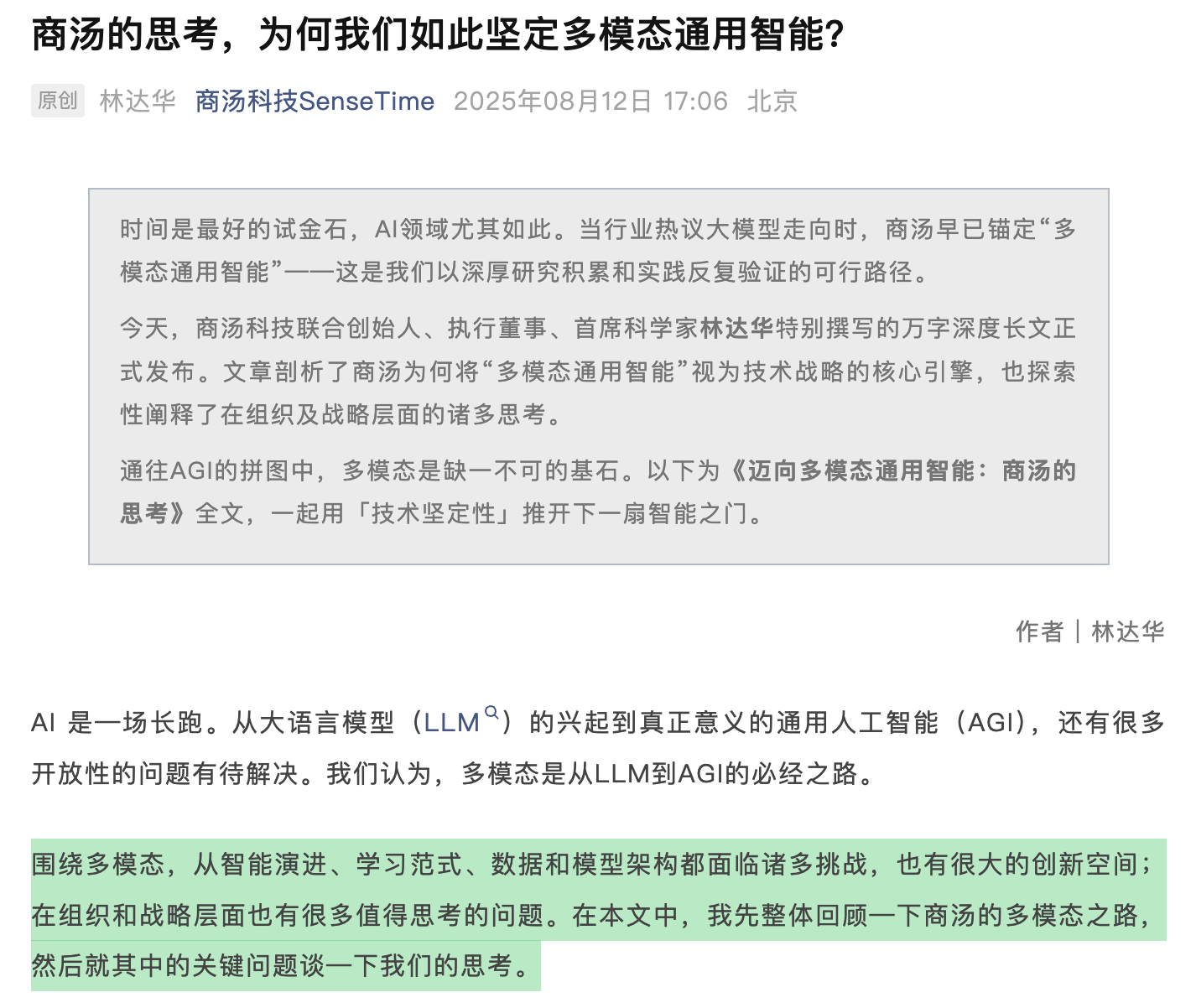 商汤科技联合创始人、首席科学家林达华:多模态是通向 AGI 的必经之路
