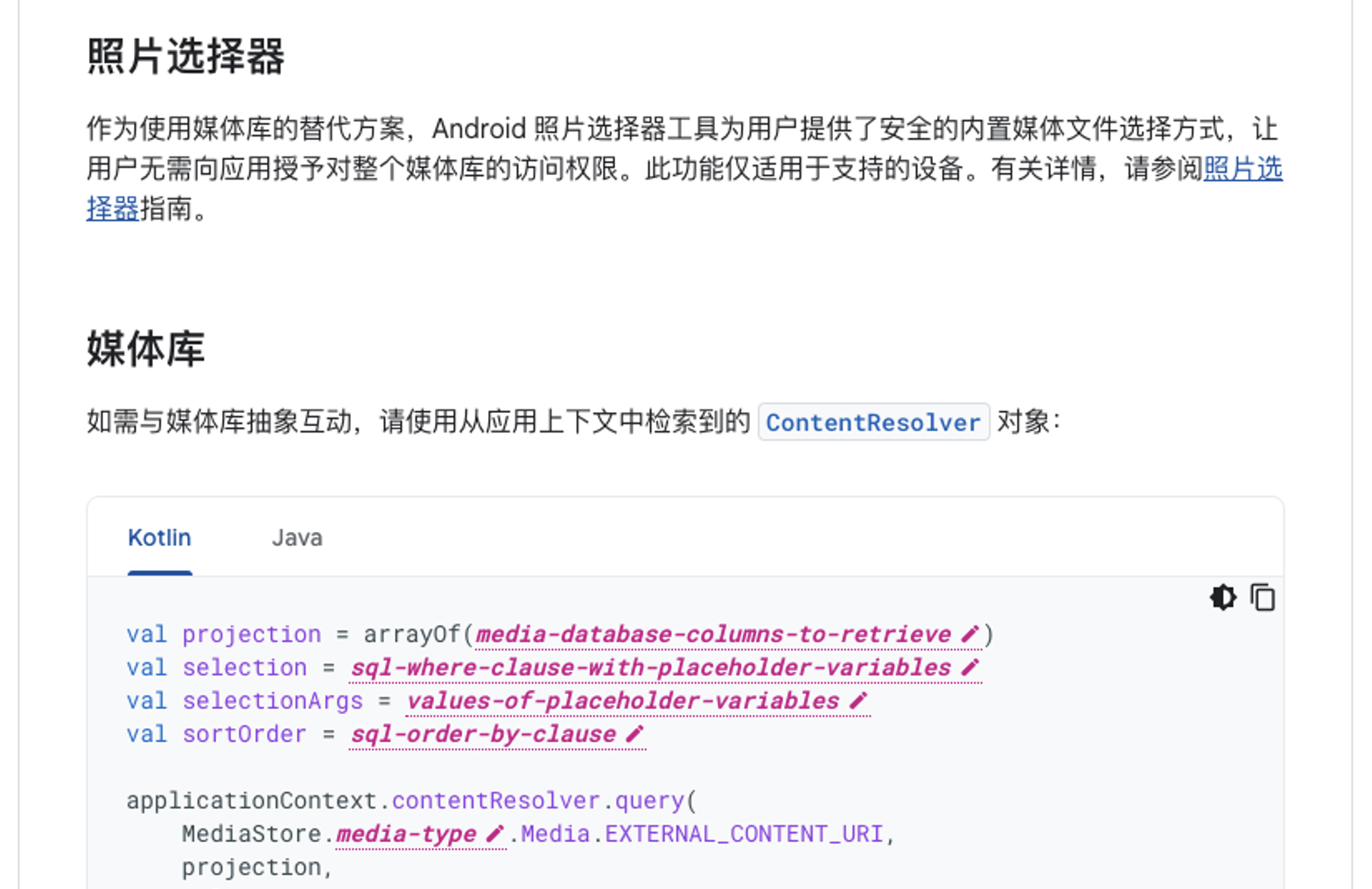 但通过Android 照片选择器这个原生的 Android 系统组件,用户可以选择个人媒体库中的部分照片与视频通过手机应用软件进行分享。应用开发者无需申请对于用户个人媒体库的完全访问权限,可以更好地兼顾核心功能需求与用户的隐私安全。
