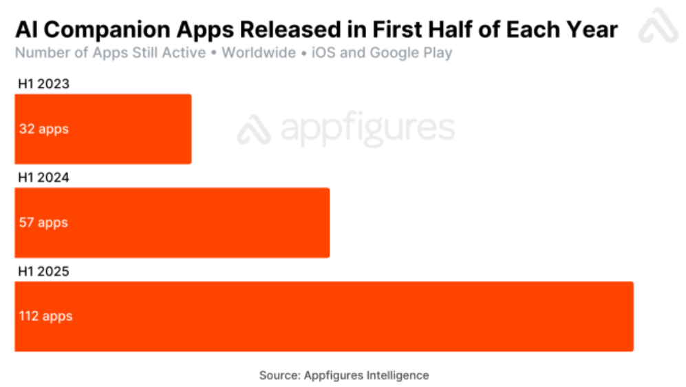 AI 陪伴应用市场爆发式增长:2025 上半年收入 8200 万美元