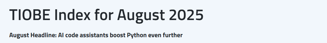 TIOBE 8 月榜单:AI 代码助手进一步推动 Python 发展