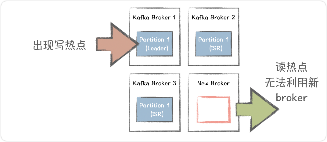 负载热点也是 Kafka 的固有问题。由于单个分区对应整条日志,资源分布非常粗糙:如果一个 Broker 承载了多个热门分区,就会出现局部 I/O 瓶颈和磁盘倾斜。LinkedIn 甚至需要依赖 Cruise Control 等工具来人工平衡集群负载。Linkedin 的文章中就指出:“复制单元越粗,集群资源倾斜问题就越严重……每个副本都要存储整个日志,会产生大量负载倾斜”。在这种情况下,新加入的 Broker 可能很长时间处于闲置状态,直到人工触发重新分配现有日志,运维成本高。