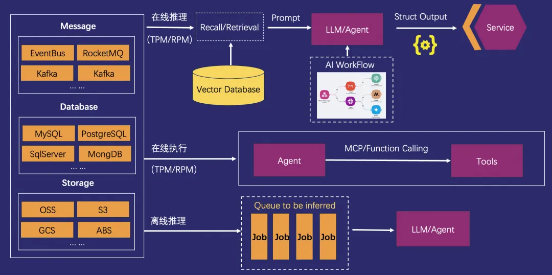目前,我们日常接触最多的 LLM 场景是人与 LLM 服务直接对话,如问 DeepSeek 一个问题或智能客服等。 但更常见且增长迅速的方式是程序触发 LLM。例如供应链优化和金融订单风控。