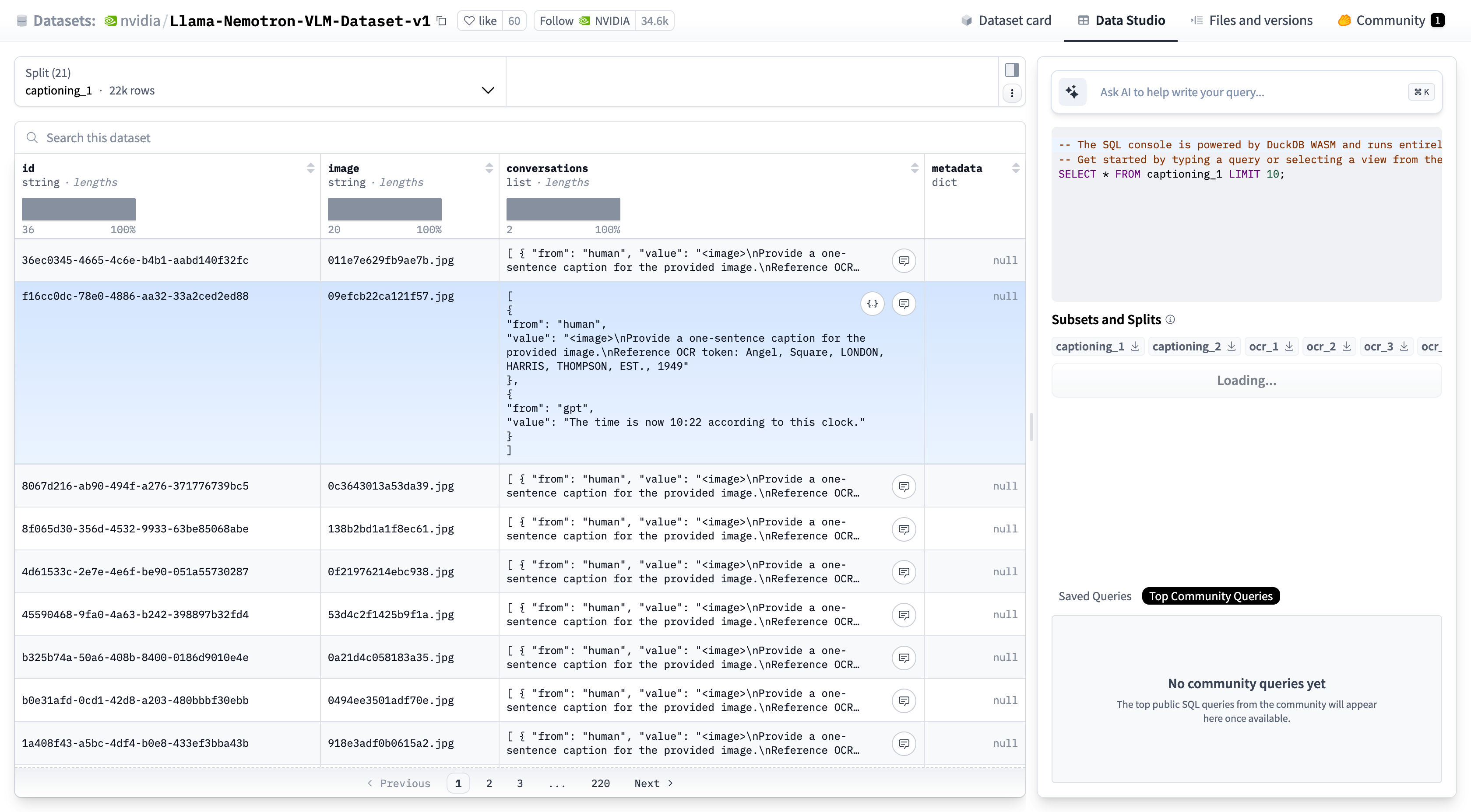 如需获取数据集,可直接访问 Hugging Face 页面:https://huggingface.co/datasets/nvidia/Llama-Nemotron-VLM-Dataset-v1