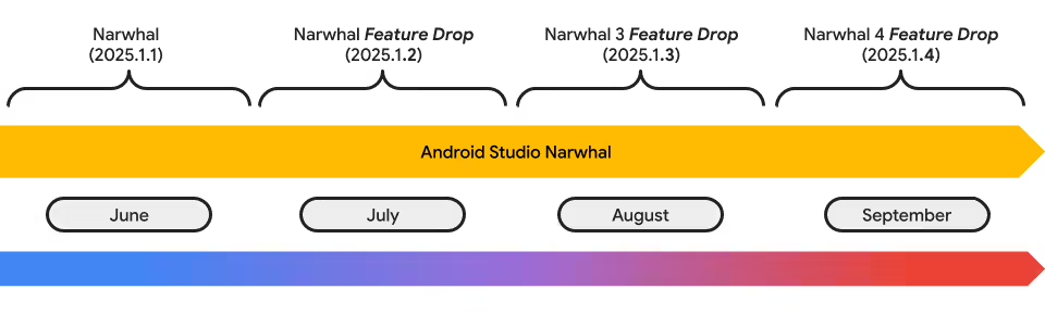 - 每隔数月发布一个集成最新 IntelliJ 平台的主要版本(如 Android Studio Narwhal);