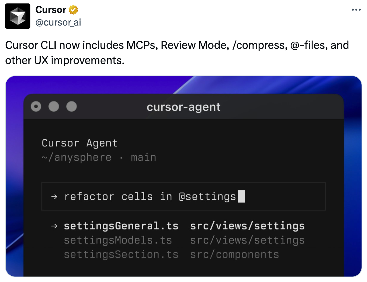 - MCPs 支持:现在 CLI 也支持 MCPs,这意味着你可以利用更丰富的扩展能力来完成复杂任务。
