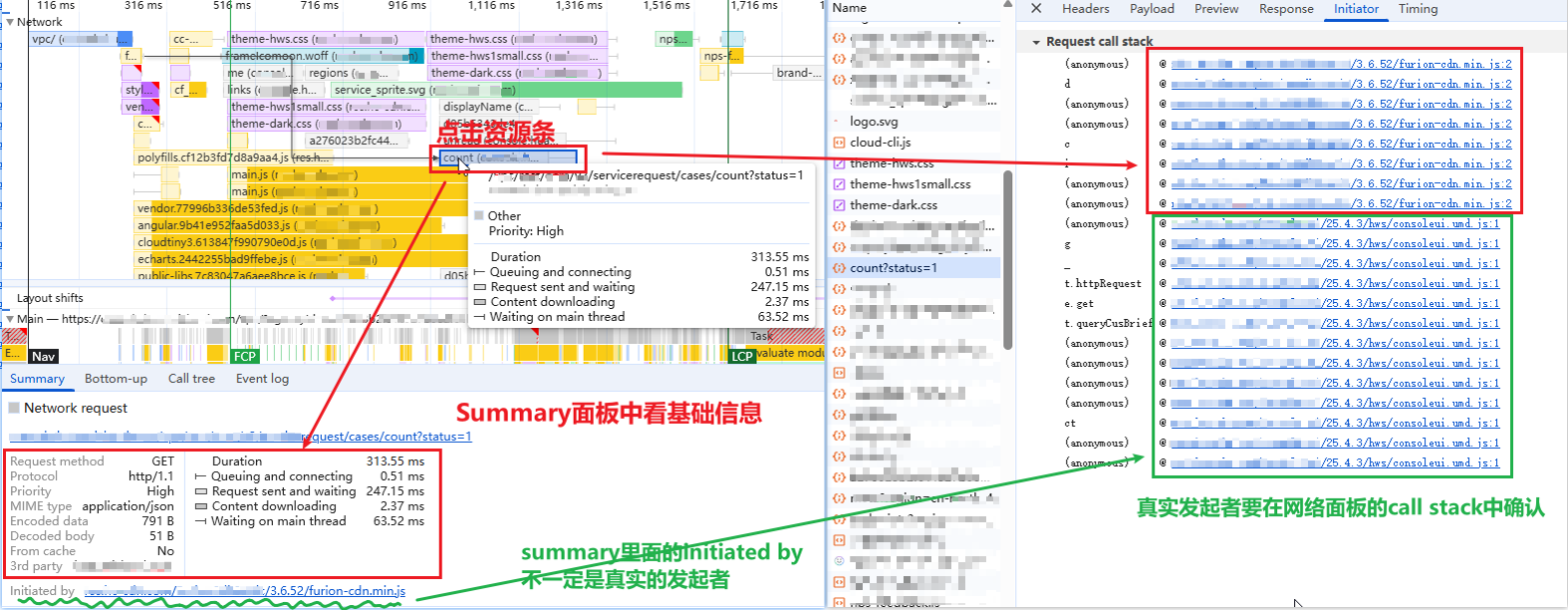 PS:有时候,Summary面板中写的Initiated by不一定是真实的发起者,真实发起者可能被层层代码封装隐藏了,我们需要到Network面板中的Initiator里面去找真实发起者