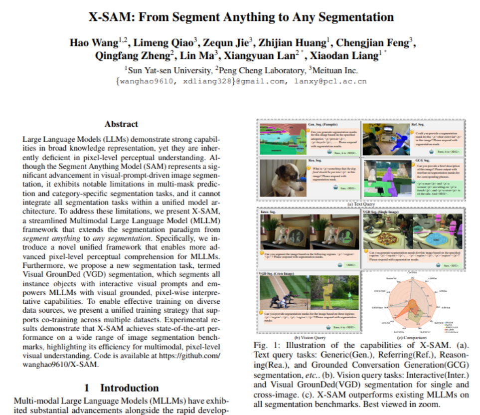 中山大学、鹏城实验室与美团三方联合研发的X-SAM图像分割模型近期正式发布,这款多模态大模型在图像分割领域实现了重要突破,将传统的"分割万物"能力升级为"任意分割",显著提升了模型的适应性和应用范围。