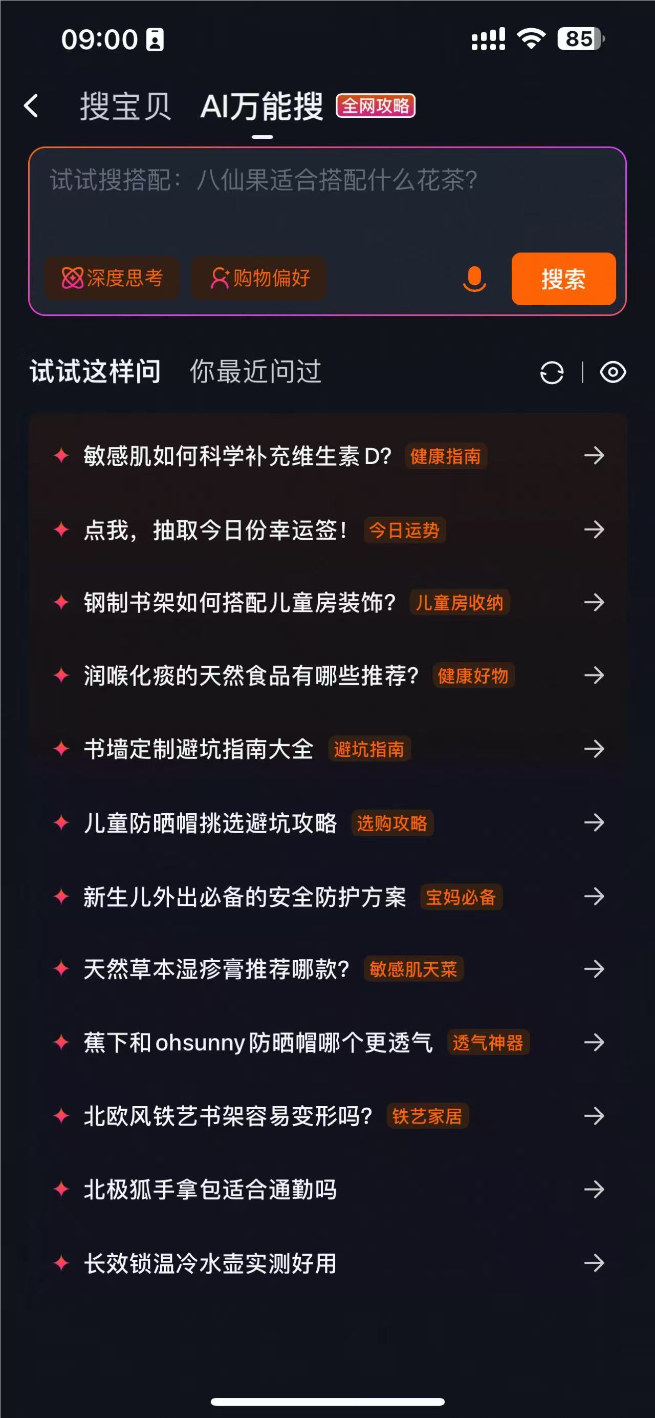 淘宝“AI 万能搜”功能灰度测试